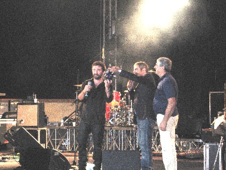 In oltre quindicimila domenica in Piazza Primo Maggio a Palmi e cinquemila ieri sera nel nuovo Anfiteatro Mia Martini di Castiglione Cosentino per i Tiromancino di Federico Zampaglione premiati con il “Riccio d´Argento” del celebre orafo Geardo Sacco per i “migliori testi dell´anno”, oscar di “Fatti di Musica Radio Juke Box 2008”, la XXII edizione della rassegna del miglior live d´autore italiano diretta da Ruggero Pegna. La band a Palmi, per volontà dell´ Assessore Comunale al Turismo e Spettacolo Francesco Trentinella, ha concluso la giornata della storica Varia, una delle manifestazioni tradizionali più antiche della Calabria, conosciuta in tutto il mondo. Ieri sera a Castiglione Cosentino, in un Anfiteatro gremito come non si era mai visto, Federico Zampaglione ha ricevuto dal promoter Ruggero Pegna e dal sindaco Tonino Russo il prestigioso riconoscimento di “Fatti di Musica”, assegnato nelle scorse edizioni anche ad autori storici come Fabrizio De Andrè, Ivano Fossati, Gino Paoli e Paolo Conte. Applausi ed ovazioni per oltre due ore di concerto, conclusosi con la consegna del premio e numerosi bis. Visibilmente emozionato anche lo stesso Zampaglione che, eccezionalmente, ha consentino ad un centinaio di ragazzi di prendere posto perfino sul palcoscenico in un finale fuori programma dedicato a Mia Martini con l´ esecuzione del celebre brano “La Nevicata del ´56”, cantato da tutto l´ anfiteatro stracolmo. Questa la motivazione del riconoscimento della giuria di “Fatti di Musica”, composta da promoter musicali e giornalisti: “Per la capacità di affrontare temi scottanti ed attuali, insoliti per la musica popolare italiana, riuscendo a coniugarli con composizioni di grande impatto ed eleganza, conquistando anche i consensi del pubblico oltre a quelli della critica. Uno straordinario successo in linea con i contenuti e l´impegno sociale ed umanitario della migliore musica d´autore italiana.” Questo ennesimo premio sugella il grande successo del doppio album live “Il suono dei chilometri” contenente, oltre ai più grandi successi dei Tiromancino reinterpretati in chiave live, anche due inediti: “Quasi 40” e “Il Rubacuori” presentato al Festival di Sanremo 2008. Proprio “Il Rubacuori” ha suscitato clamore e polemiche per il contenuto del testo, incentrato sulla piaga sociale dei licenziamenti di massa. Soddisfazione a fine serata per lo straordinario successo dell´evento che ha mobilitato giovani da tutta l´area universitaria adiacente al suggestivo anfiteatro incastonato in un pendio sottostante la piazza principale del comune silano.