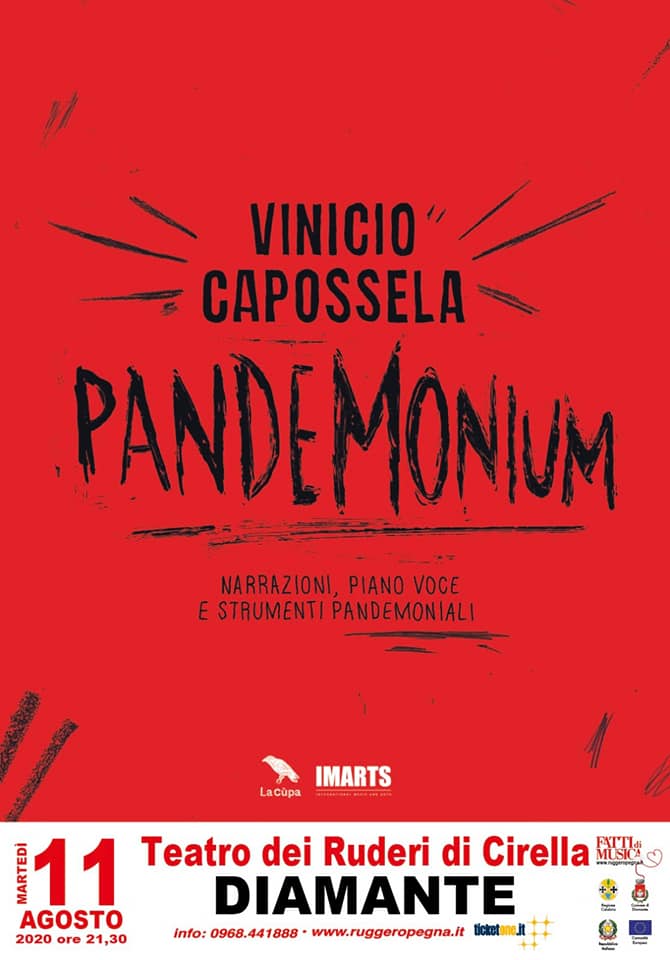 E’ ripartita con un nuovo successo “Fatti di Musica 2020”, l’edizione n. 34 del Festival del Miglior Live d’Autore ideato e organizzato dall’infaticabile Ruggero Pegna, tra gli irriducibili promoter che hanno coraggiosamente sostenuto e voluto la ripresa dei grandi spettacoli dal vivo già questa estate. Tutti gremiti i 1000 posti disponibili, massimo possibile nel rispetto delle misure anti Covid, per il “Pandemonium” di Vinicio Capossela nella favolosa cornice storico-paesaggistica del Teatro dei Ruderi dell’Area Archeologica di Cirella Antica a Diamante, unica tappa in Calabria dell’originale spettacolo del geniale musicista e cantautore italiano. Perfetta la macchina organizzativa del pioniere calabrese dei grandi live, alla prese con le eccezionali modalità previste dal Dpcm in materia di spettacoli: misurazione della temperatura, registrazione dei presenti, distanziamento sugli spalti, controllo delle mascherine e disinfettanti.