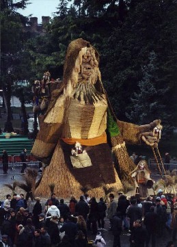 Già dal 2 gennaio al centro di Piazza Prefettura il maestro veneto Guerrino Lovato ed i suoi collaboratori inizieranno la costruzione di una Befana (vedi foto) alta oltre dieci metri che, secondo alcuni riti apotropaici del nord Europa, il 5 gennaio verso la conclusione dello spettacolo sarà bruciata mentre dal cielo arriveranno le Befane buone con i doni per i bambini. Gli uomini volanti sono i celeberrimi acrobati francotedeschi di Les Elastonautes del fenomenale Claude Lergenmuller, capaci di scalare i più grandi grattacieli del mondo e cimentarsi in incredibili acrobazie aeree.