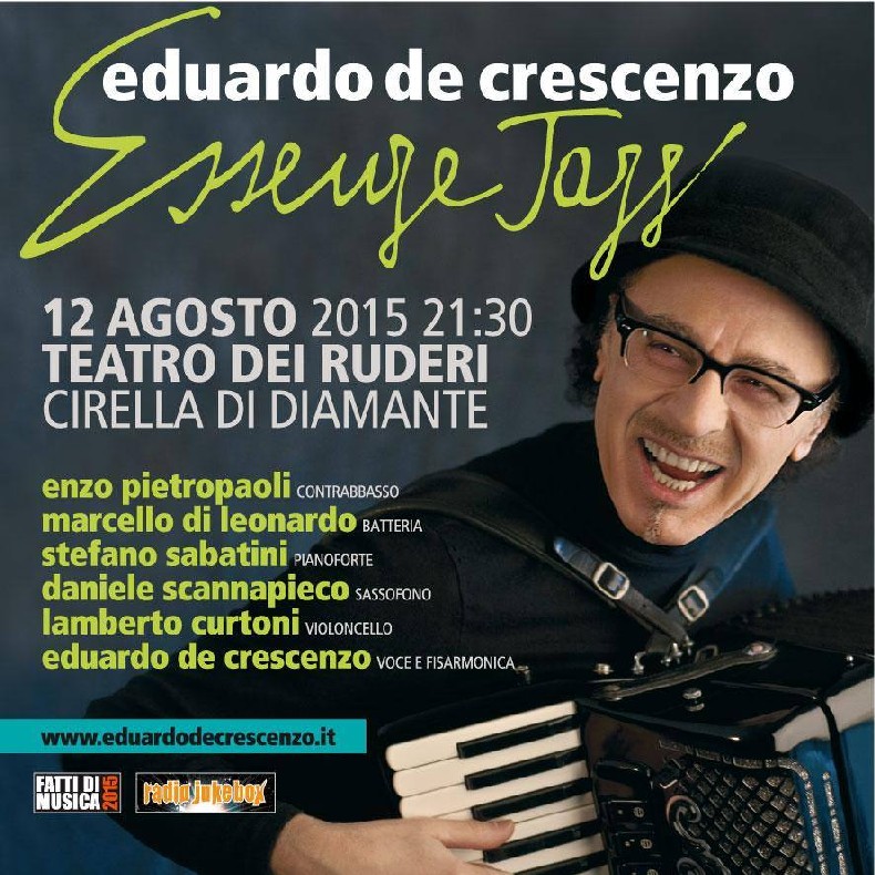 Infinite emozioni per l’eccezionale ritorno in Calabria di uno dei più grandi autori e musicisti italiani: EDUARDO DE CRESCENZO con il suo Essenze Jazz Tour e una straordinaria band: Enzo Pietropaoli contrabbasso, Marcello Di Leonardo batteria, Stefano Sabatini pianoforte, Daniele Scannapieco sassofono, Lamberto Curtoni violoncello.