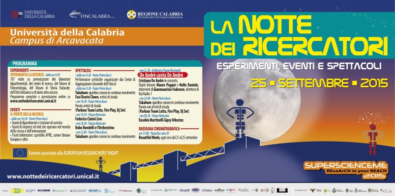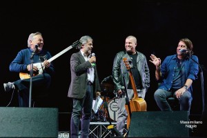 In trentamila hanno invaso il Ponte Bucci dell’Università della Calabria a Rende per l’atteso speciale concerto di Cristiano De Andrè che ha ospitato Mauro Pagani e Nello Daniele. Il doppio omaggio a Fabrizio De Andrè e a Pino Daniele, pensato e realizzato per la prima volta per “La Notte dei Ricercatori” dell’Unical, ha fatto il pieno di pubblico ed emozioni. La serata, condotta magistralmente da Gian Maurizio Foderaro di Radio Rai, si è aperta con il saluto del Rettore Gino Mirocle Crisci, che ha ritirato il “Riccio d’Argento” di “Fatti di Musica” realizzato da Gerardo Sacco, assegnato all’Unical per lo speciale evento che ha unito musica, cultura e ricerca. Per questa speciale occasione, Cristiano De Andrè ha sfoderato un concerto straordinario. Il suo inimitabile omaggio al padre, è stato eccezionalmente arricchito da due grandi special guest: l’ex PFM e pluripremiato compositore Mauro Pagani, che collaborò con Fabrizio De Andrè già da “La buona novella” e il cantautore e chitarrista Nello Daniele, fratello del grande Pino. Autentici boati hanno accolto e concluso le esecuzioni di “Don Raffaè” e “Napule è”, i due brani eseguiti da De Andrè, Daniele e Pagani per la prima volta insieme, accompagnati da Osvaldo Di Dio, chitarra, Davide Pezzin, basso, Davide De Vito, batteria. Un incontro eccezionale che ha illuminato di emozioni uniche e indimenticabili la seconda edizione della “Notte dei Ricercatori”. Le circa tre ore di questo concerto unico resteranno tra le pagine più belle ed esaltanti dei live d’autore in Calabria. Soddisfatti ed emozionati a fine serata, insieme ai musicisti, anche il Rettore Crisci, Fabio Vincenzi, delegato alle attività culturali dell’Università della Calabria e il promoter Ruggero Pegna, che ha organizzato proprio per l’Unical questo storico live.
