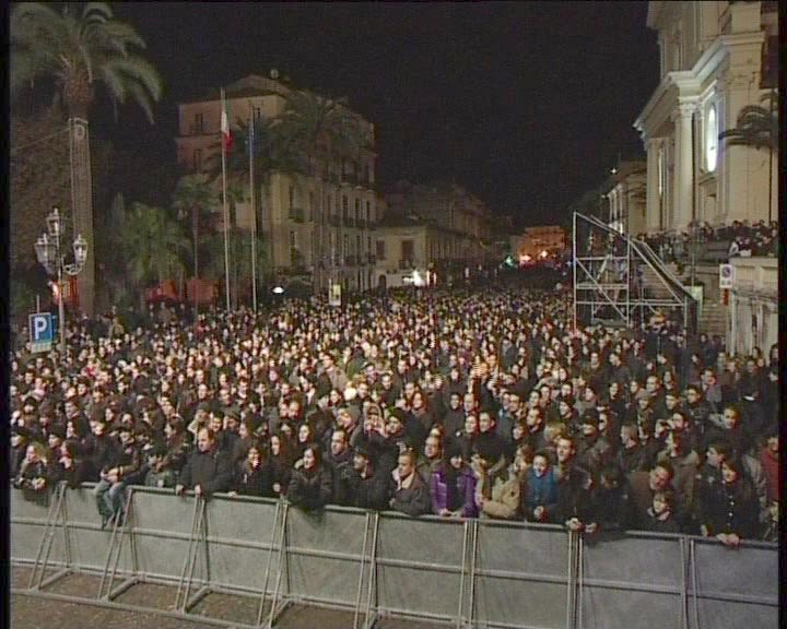 All? 01,25, tra il composto entusiasmo della folla straripante, sono saliti sul palcoscenico Neffa e i suoi musicisti. ?Dedico questo concerto ? ha detto subito l?originalissimo cantautore – a questa Città e alle famiglie provate dal dolore. Auguri a tutti. Ora si va con la mia musica!? Una dietro l?altra, sono così arrivate tutte le perle che Neffa ha portato al successo in questi anni scalando le classifiche e i gradimenti dei giovani, da ?Prima di andare via?, vero tormentone radiofonico a ?Ore piccole?, tra i suoi brani più cantati, da ?Qualcosa di più? all? hit ?Cambierà?. Un concerto pieno di energia, in cui Neffa e i suoi musicisti hanno spaziato tra i più attuali generi musicali, fino ad approdare a classici del blues e del pop, tra i quali un gradito omaggio ai Beatles. La scaletta del concerto si è chiusa con l?autentica esplosione di entusiasmo prodotta da ?Signorina?, il suo brano più amato e ballato, colonna sonora di notti e feste. Richiamato dai cori delle migliaia di giovani presenti, Neffa è, poi, tornato sul palcoscenico per due bis fuori programma, facendo ballare la piazza fino alle 03.00 in punto, quando, tra saluti e auguri, si sono riaccese le luci natalizie, spente per tutto il periodo del concerto. L´evento, organizzato per il Comune dalla Show Net di Ruggero Pegna, è stato interamente trasmesso anche su schermi sistemati a grande distanza dal palcoscenico. L?afflusso record, infatti, era stato ampiamente previsto e l?organizzazione, supportata da Vigili Urbani, Forze dell?Ordine e Protezione Civile, come accade ogni estate per le folle richiamate dal Demofest, ha saputo gestire in modo esemplare l?intero evento, fino al lento deflusso finale.