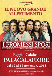 A ritirare il “Riccio d’Argento” dell’orafo crotonese Gerardo Sacco, il Premio alla “Migliore Produzione Teatrale dell’Anno” della ventinovesima edizione di “Fatti di Musica”, è arrivato lo stesso regista della Rai Michele Guardì che, oltre al riconoscimento, ha ricevuto il calorosissimo abbraccio del pubblico calabrese. Un’opera imponente, quella portata in scena da Guardì, capace di emozionare e incantare per il cocktail perfettamente riuscito di musiche, scene, coreografie, luci e d effetti speciali, che hanno trasformato la solenne opera manzoniana in uno spettacolo da mille e una notte. La serata finale si è aperta con un minuto di silenzio e tutto il cast sul palcoscenico a cantare il Padre Nostro, dedicati alle vittime di Parigi. Subito dopo, Guardì ha voluto ringraziare tutti, dal suo strepitoso cast, ai tanti tecnici, a Ruggero Pegna che ha organizzato l’evento tra mille difficoltà burocratiche, come ha sottolineato il regista. Le due ore e trenta minuti di spettacolo si sono concluse con il pubblico tutto in piedi per tributare agli straordinari protagonisti la meritata ovazione. Bravissimi tutti i componenti dello stellare cast, con i nomi più noti dell’Opera Musicale moderna italiana: Graziano Galatone nel ruolo di “Renzo”, Noemi Smorra in quello di “Lucia”, Vittorio Matteucci nell’ “Innominato”, Rosalia Misseri nei panni della “Monaca di Monza”, Giò Di Tonno “Don Rodrigo”, Salvatore Salvaggio “Don Abbondio”, Brunella Platania “Agnese”, Enrico D’Amore “Egidio”, il reggino Lorenzo Praticò il “Griso”. E ancora, con due ruoli ciascuno: Christian Gravina (Fra Cristoforo – Cardinale Borromeo), Chiara Luppi (Perpetua – la madre di Cecilia) e Vincenzo Caldarola (Avvocato Azzecca Garbugli – Conte Attilio). Un eccezionale Corpo di ballo ha convinto e strappato applausi per cifra tecnica e bravura. Tante le firme che condividono il “Premio Migliore Produzione dell’Anno”, oltre a quella del celebre regista della Rai Michele Guardì, che ne ha curato anche testi e libretto: Pippo Flora per le musiche e gli arrangiamenti, Luciano Ricceri per le scene, Luciano Cannito per le coreografie, Alessandro Lai per i costumi, il grande maestro orafo crotonese Gerardo Sacco per i gioielli, Marco Macrini per le luci, l’Orchestra Sinfonica “Nova Amadeus” diretta dal maestro Renato Serio, il musicista e cantautore Sergio Cammariere per la consulenza nell’Editing musicale. “I Promessi Sposi” hanno chiuso col botto la ventinovesima edizione di Fatti di Musica Radio Juke Box, la rassegna del miglior live d’autore ideata e organizzata da Ruggero Pegna con il partenariato dell’Assessorato alla Cultura della Regione Calabria e della Comunità Europea.