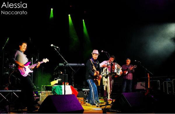 Due ore di musica con inedite timbriche elettro–acustiche, suoni originali e crudi, ancestrali e futuristici insieme, prodotti con gli strumenti che più appartengono alla storia della band, quali percussioni, cajon, fisarmonica, tamburelli, chitarre, mandolini, a cui si sono aggiunti quelli delle band musicali mediterranee, come gli archi mitteleuropei. Bellissimi i testi che, cantati spesso a più voci e in diverse lingue e dialetti, hanno affrontato temi di attualità, come lo spopolamento dei piccoli centri con dispersione di comunità e perdita di culture, la mafia, l’ambiente, il viaggio, il diritto alla terra, alla vita e alla morte e raccontato storie di paesi abbandonati, rovine, viaggiatori, poveri, umili, naufraghi, profughi, emarginati, emigranti e immigrati, nelle diverse forme che assumono nello spazio e nel tempo. Due ore e trenta di brani pieni di energia, tutti quelli storici del gruppo – dalle oramai classiche “Riturnella” e “La palummedda russa” allo scanzonatissimo “Lupu” – accompagnati da canti, balli e tanto contagioso entusiasmo, fino ai diversi bis con cui la band si è congedata lasciando la consapevolezza in chi ha partecipato di aver assistito a una vera esplosione di musica. Bravissimi tutti, da Salvatore De Siena, capace di guidare e tenere la scena da consumato cantante-musicista-attore, agli imperturbabili Amerigo Sirianni e Mimmo Crudo, Bravi anche Antonio Rimedio, sax, fisarmonica e tastiere, e Manuel Franco alla batteria.