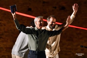Caetano Veloso, giunto sul prestigioso palcoscenico ai piedi dei resti dell’antica cattedrale Normanna con i figli Moreno, Zeca e Tom, ha incantato per oltre due ore, sfoderando tutti i suoi successi planetari, la sua simpatia, l’infinita poesia delle sue canzoni e un’eleganza inimitabile. Per la stella di Santo Amaro di Bahia, è stata la prima volta in questa regione e l’unica tappa al Sud delle sole 4 date italiane del nuovo tour mondiale “Ofertorio”. Bravi e applauditissimi anche Moreno, Zeca e Tom, con Moreno in particolare che ha rubato la scena più volte, improvvisando curiosi siparietti con il celeberrimo padre e i suoi due fratelli.