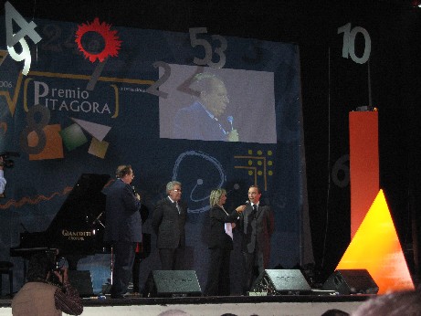 Si è concluso così, in stile da autentico gran gala, la terza edizione del prestigioso “Premio Pitagora” , il cui maggiore riconoscimento, il “Premio Pitagora 2006” per l´appunto, è stato consegnato ad Enrico Bombieri, matematico di Princeton, prescelto dalla giuria, composta da Piergiorgio Odifreddi dell?Università di Torino, Carlo Bernardini dell?Università di Roma, Jaques Guenot dell?Università di Cosenza, Claudio Bartocci dell?Università di Genova, Andrea Laforgia presidente nazionale Mathesis, società italiana di scienze matematiche e fisiche, Gabriele Lolli dell?Università di Torino e Michaelis Anoussis dell?Università dell?Egeo. Oltre al “Premio Pitagora 2006” di cinquantamila euro assegnato ad Enrico Bombieri, per il suo studio sulla teoria dei numeri primi, che in mattinata ha tenuto anche la lectio magistralis, altri premi sono stati conferiti ad Umberto Bottazzini storico della matematica, per il miglior articolo; Ennio Peres, matematico giocologo dell?Università di Roma, per il lavoro multimediale; Luciano Cresci, ingegnere della IBM per il libro ?Curve celebri?; Carlo Pischedda per il sito www.math.it.