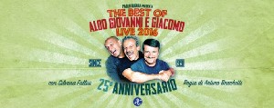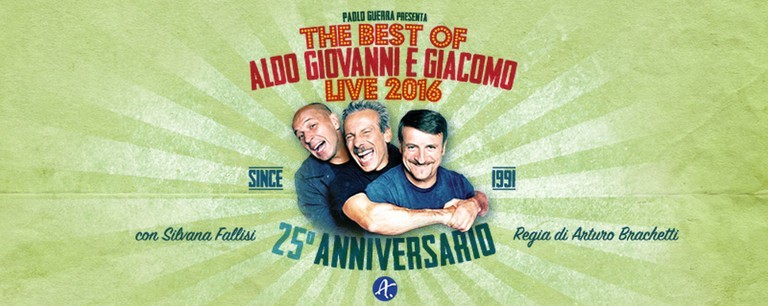 “Fatti di Musica 2016”, la trentesima edizione della rassegna del live d’autore che ogni anno si svolge in Calabria, ideata e diretta da Ruggero Pegna, ha presentato nella sezione “Eventi Speciali” il megashow di Aldo Giovanni e Giacomo al Palacalafiore di Reggio per l’unica tappa in Calabria del loro tour europeo; uno strepitoso show prodotto da Agidi per festeggiare i loro venticinque anni di successi. Per il momento, è stata anche l’ultima tappa italiana dell’intero tour.
