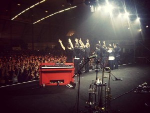 Si è chiusa a Catanzaro con lo straordinario concerto del super trio Fabi Silvestri Gazzè la 28° edizione di “Fatti di Musica”, la rassegna del live d’autore ideata e diretta da Ruggero Pegna. Tre ore di grande musica, ironia, forti messaggi sociali, che hanno entusiasmato il pubblico accorso da ogni angolo della regione per l’unica data in Calabria di questo inedito e fortunato tour, premiato con il “Riccio d’Argento” del celebre orafo crotonese Gerardo Sacco per il “Migliore Album” e la “Migliore Produzione del 2014” . Per la produzione dello show ha ritirato il premio Francesco Barbaro, titolare della Otr Live. Eccezionale la band che ha arricchito di bravura e simpatia l’intero concerto: Roberto Angelini chitarre, Dedo (Massimo de Domenico) trombone, Piero Monterisi batteria, Gianluca Misiti pianoforte, Adriano Viterbini (Bud Spencer Blues Explosion) chitarre, Josè Ramon Caraballo Armas percussioni e tromba. “Un live – dice la motivazione dei premi della rassegna – che in ogni data si è trasformato in un’autentica festa della migliore nuova musica d’autore italiana, con una sequenza eccezionale di successi e una scenografia imponente, arricchita da immagini e suggestivi effetti luci. Un concerto capace di scatenare entusiasmo e trasmettere continue emozioni, sprigionando energia contagiosa. Un incontro artistico, umano e musicale perfettamente riuscito, consegnato alla storia del genere, tra tre musicisti di enorme bravura.” In effetti, il clima che si è respirato nel palasport catanzarese è stato di contagiosa euforia: pubblico a cantare e ballare, cori da stadio, gioia collettiva e, ovviamente, applausi scroscianti, lunghe richieste di bis e ovazione finale con tutta la super band sul palcoscenico a trasmettere le ultime emozioni di una notte indimenticabile. Un concerto che ha ridestato i fasti dei tempi d’oro della musica d’autore italiana, presentando in nuove vesti tutti i grandi successi di Fabi Silvestri e Gazzè e i brani dell’album “Il padrone della festa”, scritto insieme dai tre artisti e già divenuto album cult per gli estimatori del genere.“E’ stato uno dei concerti più belli di queste ventotto edizioni della mia rassegna – questo il commento emozionato di Ruggero Pegna – Uno spettacolo d’autore con tre artisti unici e originali, intelligenti, simpatici, veri musicisti e persone speciali. Straordinarie anche la band e la struttura dello show, con una scaletta travolgente di brani splendidi. Sono contento – ha concluso Pegna – che questa edizione si sia chiusa con la preziosa perla che la musica d’autore italiana ha regalato al pubblico in questo 2014 ormai al termine. Premi meritatissimi e grande festa di chiusura da incorniciare!”. In mattinata i tre cantautori hanno anche incontrato gli studenti dell’Università Magna Graecia di Catanzaro, ai quali hanno parlato della loro esperienza a sostegno del progetto umanitario “Medici con l’Africa Cuam”, organizzazione sanitaria non governativa che si occupa della promozione e della tutela della salute delle popolazioni africane. Un’esperienza non solo fisica ma anche interiore che ha portato ai giovani studenti in medicina di Catanzaro racconti e immagini commoventi. “Fatti di Musica Radio Juke Box”, la rassegna che negli anni ha regalato alla Calabria i più prestigiosi eventi musicali, da Sting ad Elton John e James Taylor, da Fabrizio De Andrè a Paolo Conte, è stata realizzata con il partenariato dell’Assessorato alla Cultura della Regione Calabria e della Camera di Commercio di Catanzaro. Va in archivio con questo concerto un’edizione ricca di eventi e di presenze di spettatori, aperta in marzo dal celeberrimo gruppo inglese degli Stomp e che ha presentato, tra gli altri, i live di Cristiano de Andrè, Loredana Bertè, Giuliano Palma, Irene Grandi, Afterhours, Caparezza e Pino Daniele. Appuntamento, conferma Pegna, al 2015 per la 29° edizione che si preannuncia ancora una volta sorprendente.