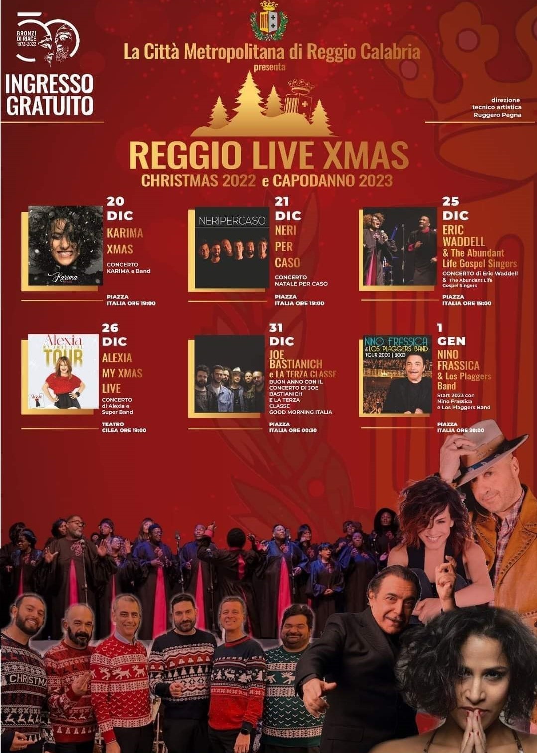 Grande successo a Reggio Calabria per il “Reggio Live Xmas” della Metrocity. Grandi presenze e straordinaria risonanza mediatica per gli eventi effettuati con Karima il 20 dicembre, Neri per Caso il 21, Eric Waddell & The Abundant Life Singers il 25, Alexia il 26, Joe Bastianich & la Terza Classe a Capodanno e il gran finale con Nino Frassica e Los Plaggers Band il 6 gennaio!